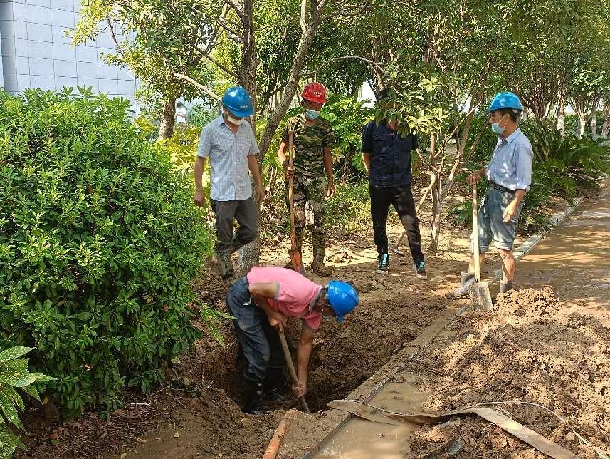 接到通知后,公司運(yùn)維部搶修人員迅速趕往現(xiàn)場進(jìn)行勘察,通過精準(zhǔn)定位鎖定了漏點(diǎn),并制定了搶修方案。快速挖開路面,經(jīng)排水、挖掘、清理后,搶修人員對此處破損的DN300供水管展開了搶修。他們采用“哈夫節(jié)”包接方式,將新舊管道接口成功連接。截至當(dāng)天下午3時(shí),經(jīng)過7個小時(shí)持續(xù)不間斷奮戰(zhàn),漏水供水管道搶修工作結(jié)束,經(jīng)管壓調(diào)試后恢復(fù)正常供水。
