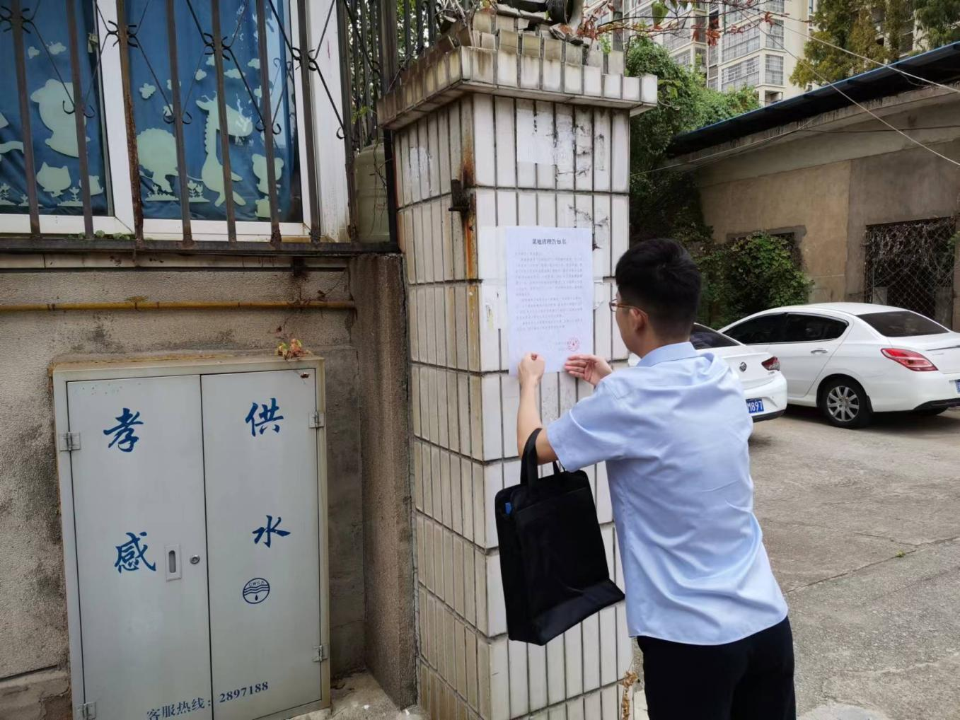 檢查小組一行到一水廠張貼了《菜地清理告知書》并對水廠宿舍樓周邊進(jìn)行察看。檢查發(fā)現(xiàn),除一水廠復(fù)式樓院墻邊小菜園外,原廢棄清水庫上面也有居民種菜,存在巨大安全隱患。