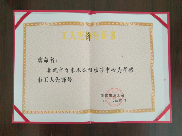 市自來水公司維修中心喜獲“孝感市工人先鋒號”榮譽稱號