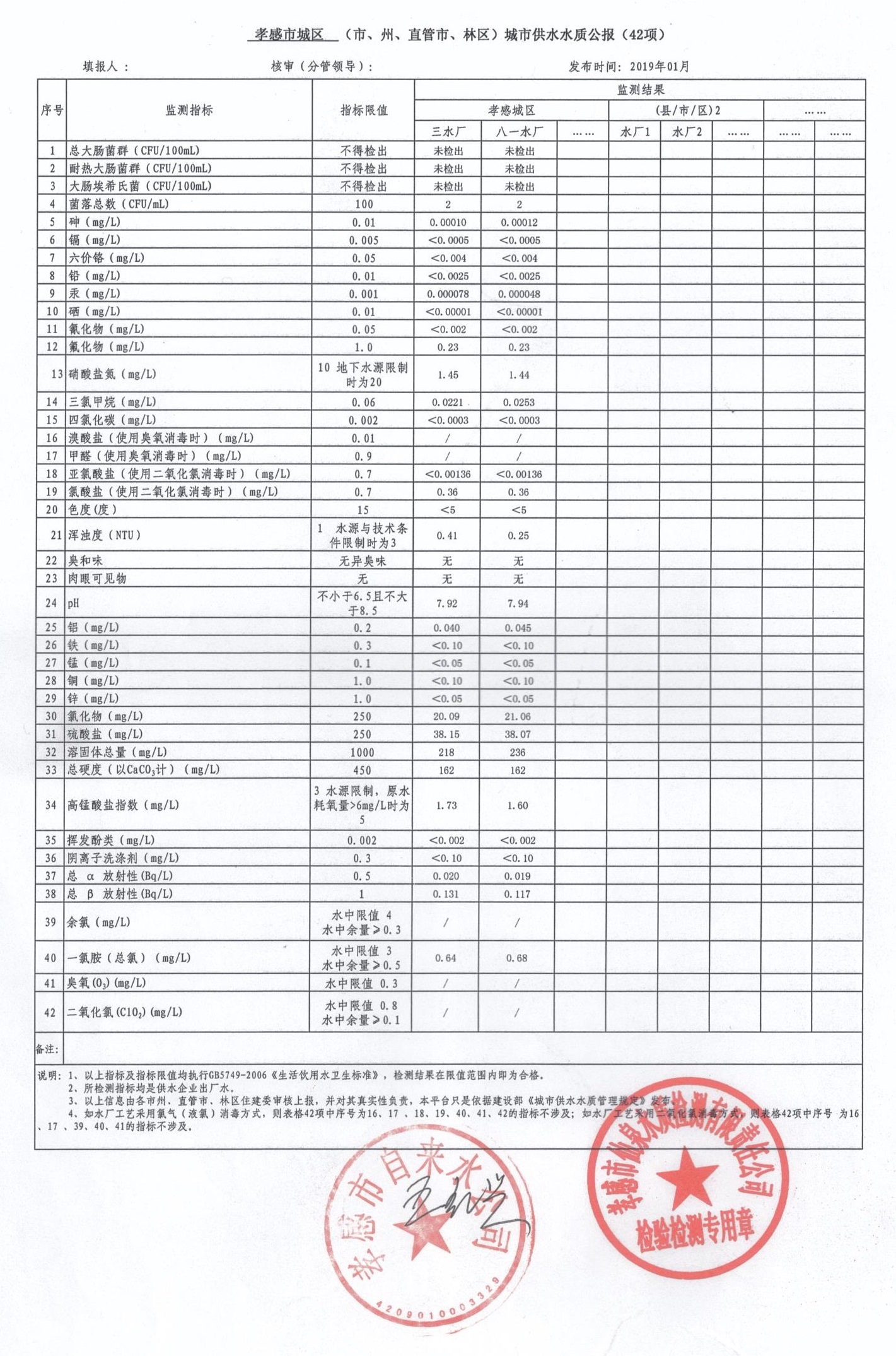 2019年1月水質(zhì)報(bào)告