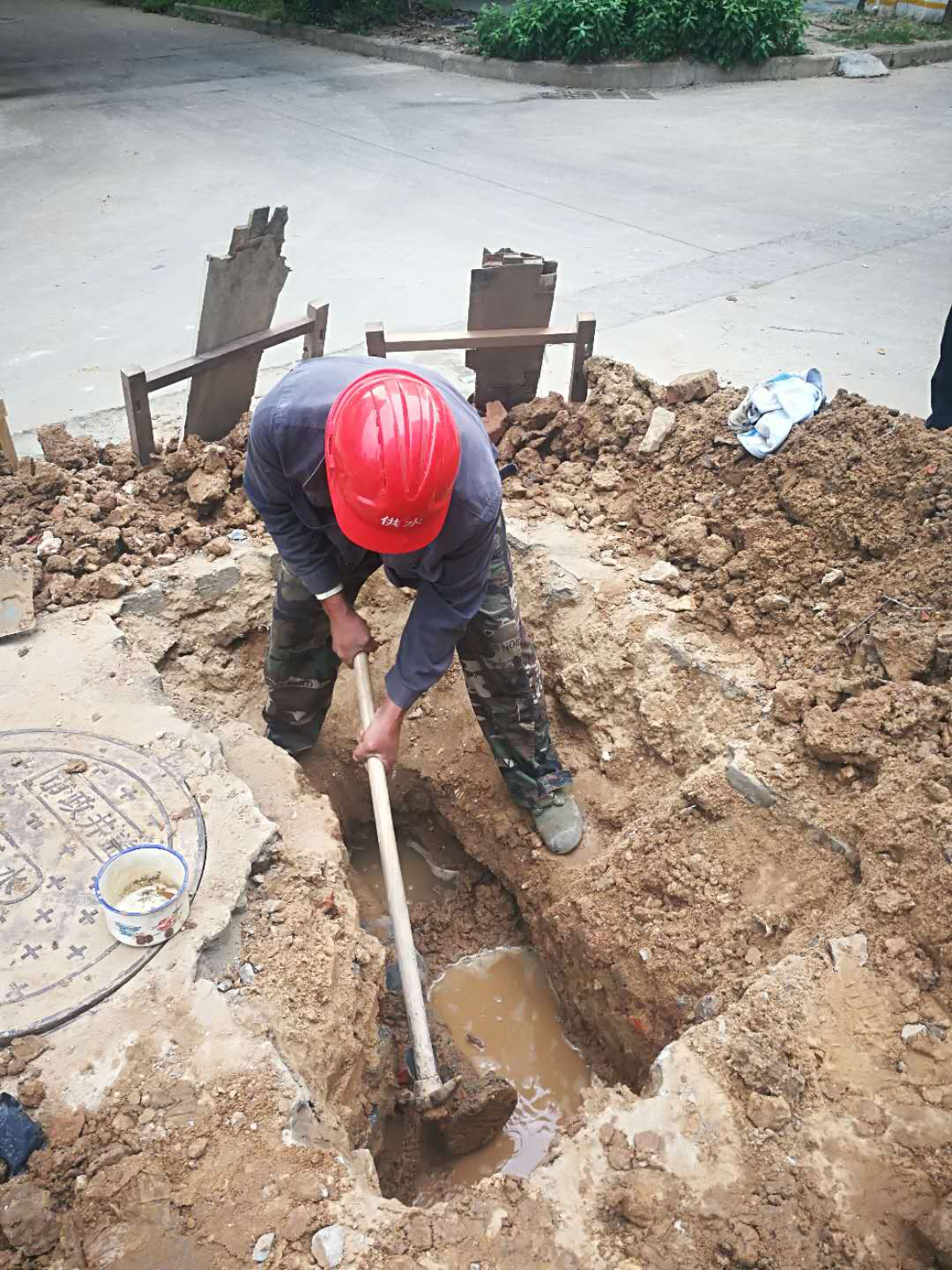 據了解,兵工花園小區(qū)于去年10月開始進行“三供一業(yè)”管道改造,5月13日上午,我公司管安部門組織驗收時發(fā)現(xiàn),該小區(qū)供水管網存在漏水現(xiàn)象。經工作人員初步檢查,懷疑是小區(qū)內部自有管道存在漏點,后經定點查勘,確認為是小區(qū)內部PE110轉63管道預留口堵板處漏水。此前,應小區(qū)業(yè)主要求,我公司進行“三供一業(yè)”管網改造時,對該小區(qū)部分原有供水管道予以保留。此次驗收試壓發(fā)現(xiàn)小區(qū)部分自有管道存在老化破損漏水現(xiàn)象。按規(guī)定,這種情況應由小區(qū)自行處理,秉著為人民服務的理念,我公司主動承擔社會責任,根據現(xiàn)場的管道漏水情況,制定維修方案。對漏水點開挖、抽排水、更換墊片、封堵漏點,經過了3個多小時的緊急維修,最終圓滿的解決了該小區(qū)管道漏水問題。