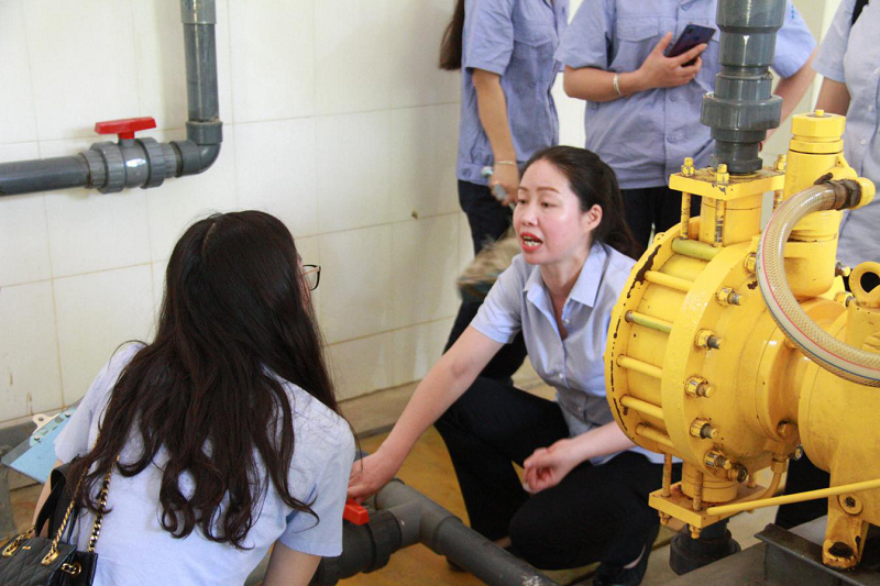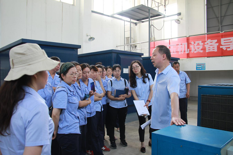 培訓過程中,丁廠長首先向大家介紹了三水廠的基本情況和水質安全的重要性,隨后帶領大家來到凈化池。通過現場參觀,給水廠職工講解了凈化池的工作原理及基本工藝流程。理論知識授課完畢后,丁廠長還帶領大家來到車間,對各種設備設施進行了現場講解,并對空壓機設備導換、加藥泵設備導換進行了實地操練 。