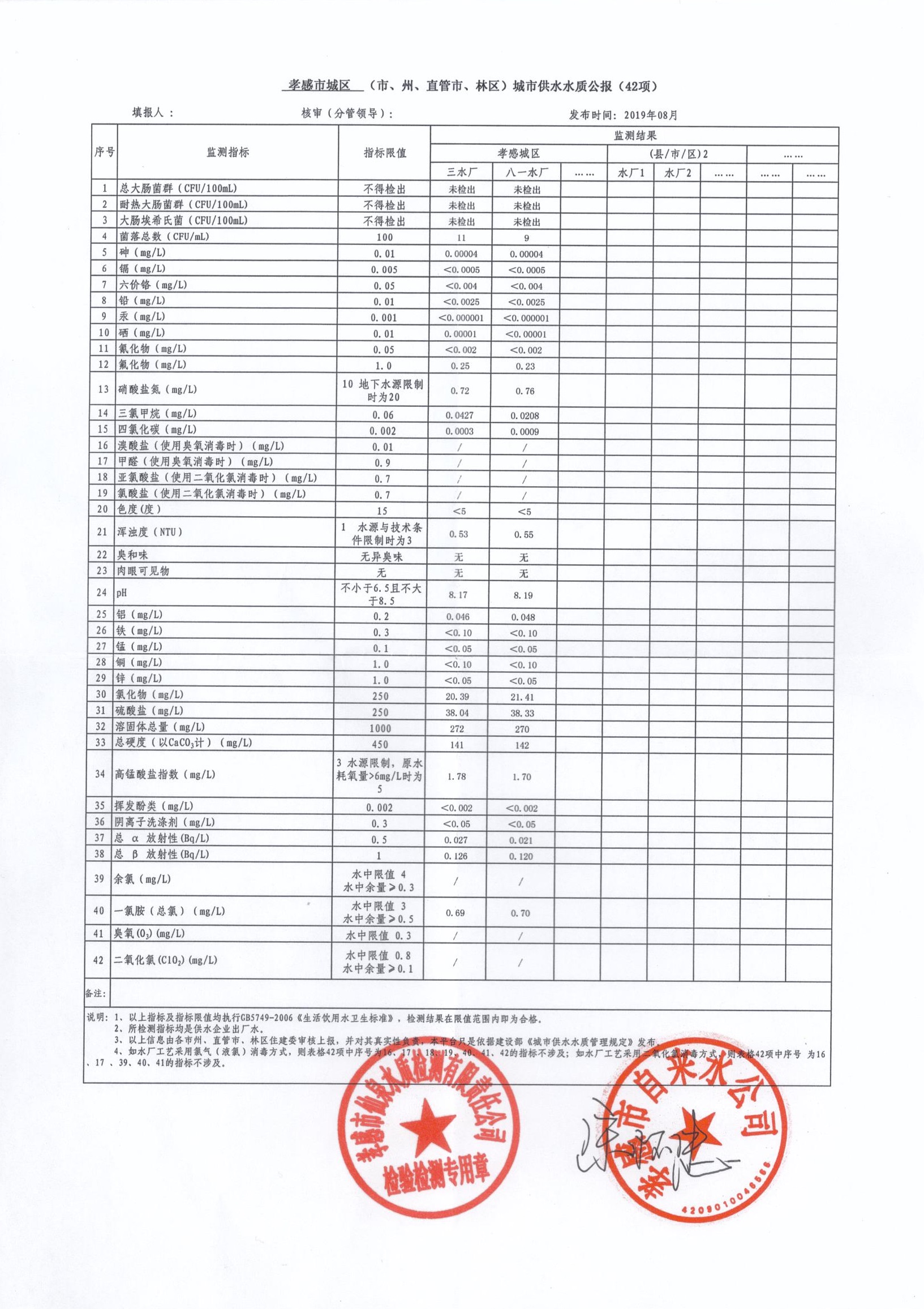2019年8月水質報告