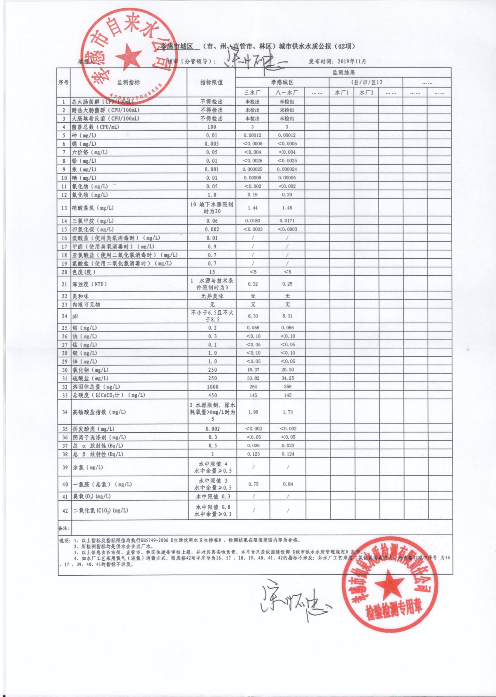 2019年11月水質報告