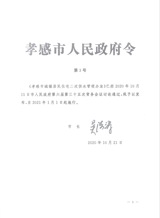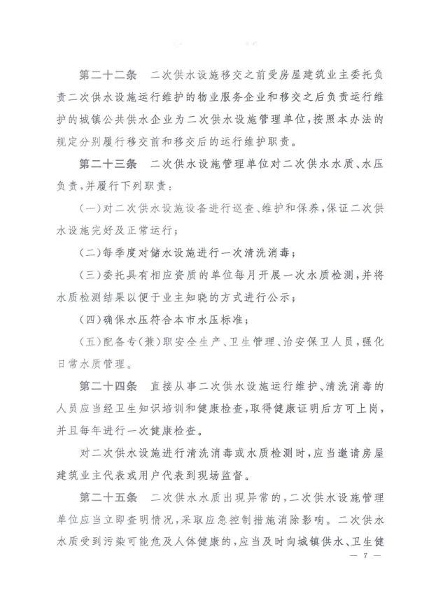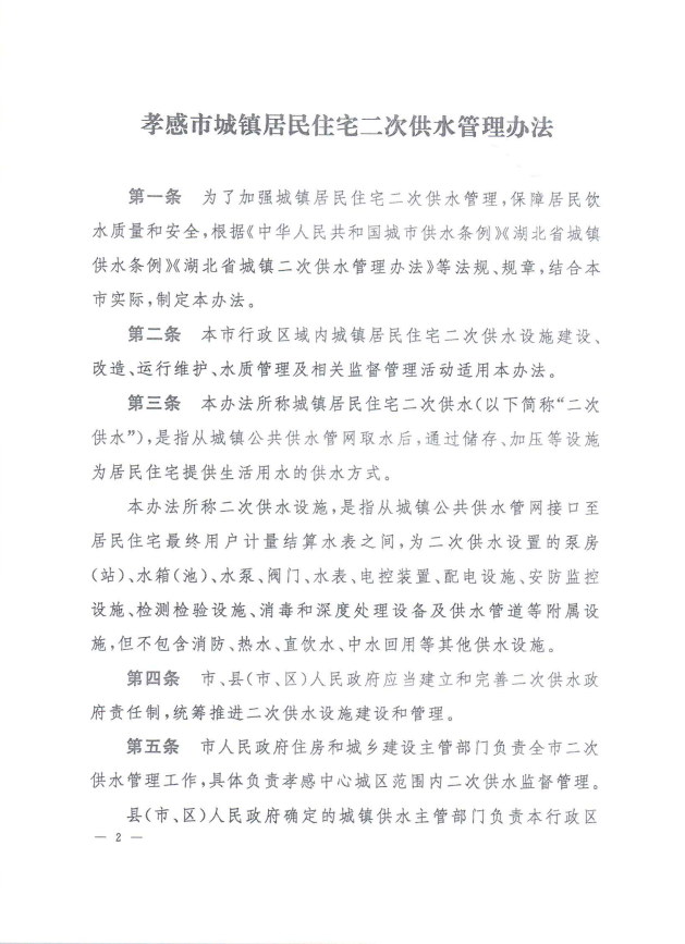 孝感市城鎮(zhèn)居民住宅二次供水管理辦法